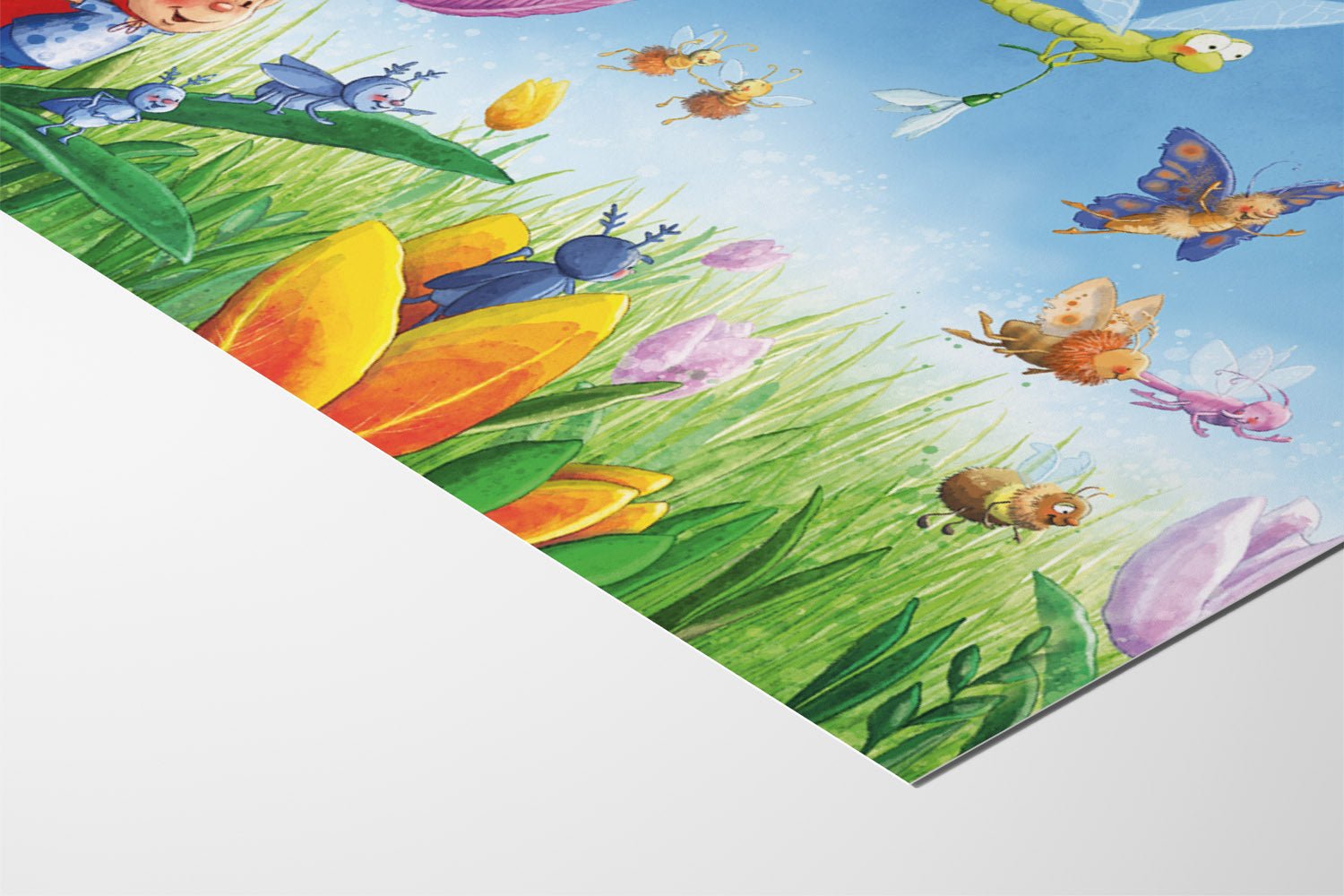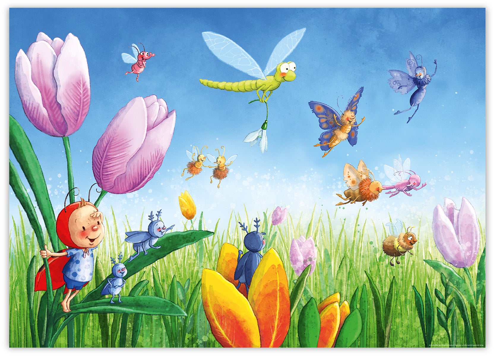 Poster fürs Kinderzimmer mit einer Illustration aus "Kribbelkrabbel! Mein Wiesen-Wimmelbuch", Illustration: Julia Bierkandt © Coppenrath Verlag