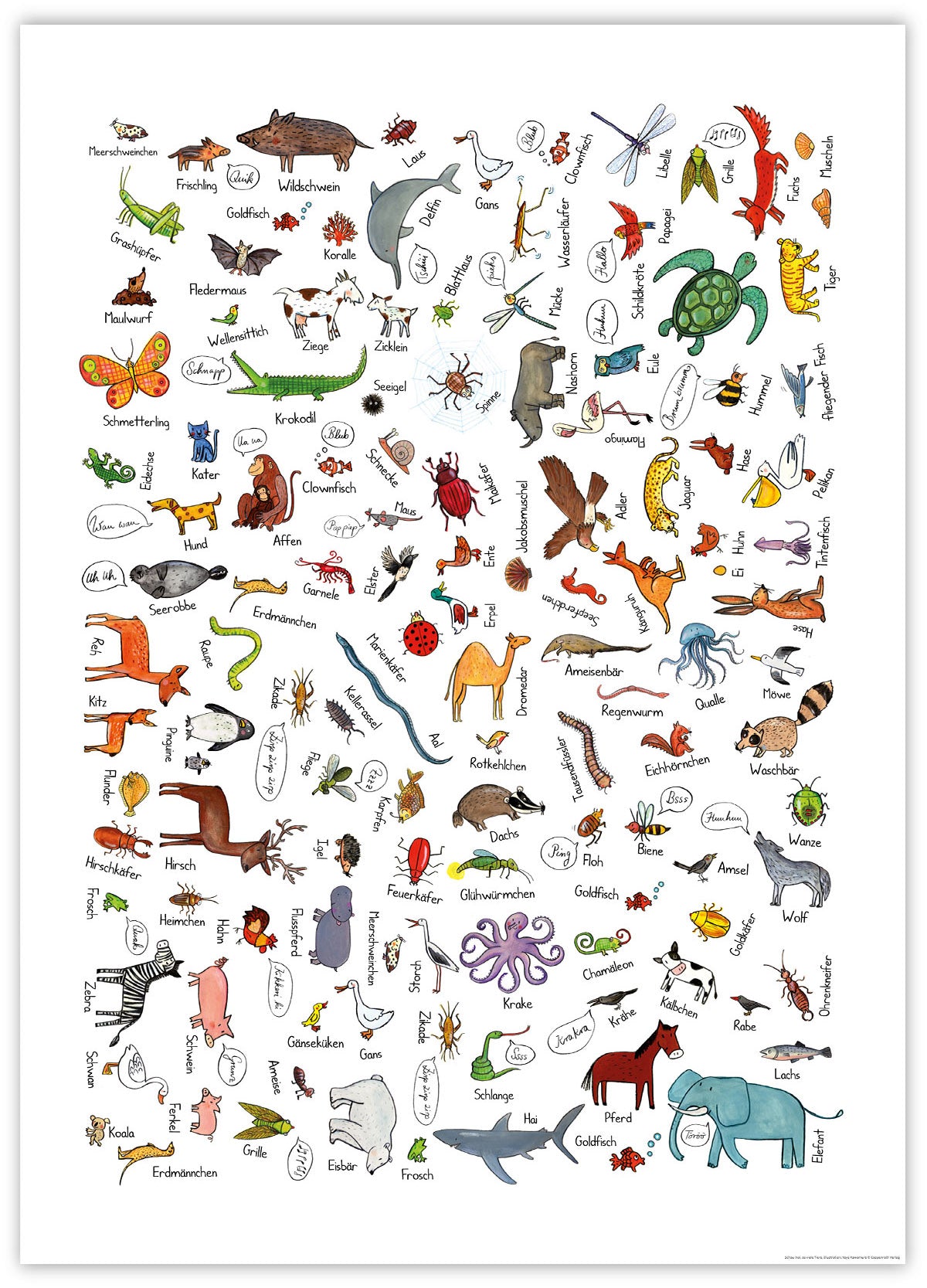 Poster fürs Kinderzimmer mit einer Illustration aus "Schau mal, so viele Tiere", Illustration: Yayo Kawamura © Coppenrath Verlag