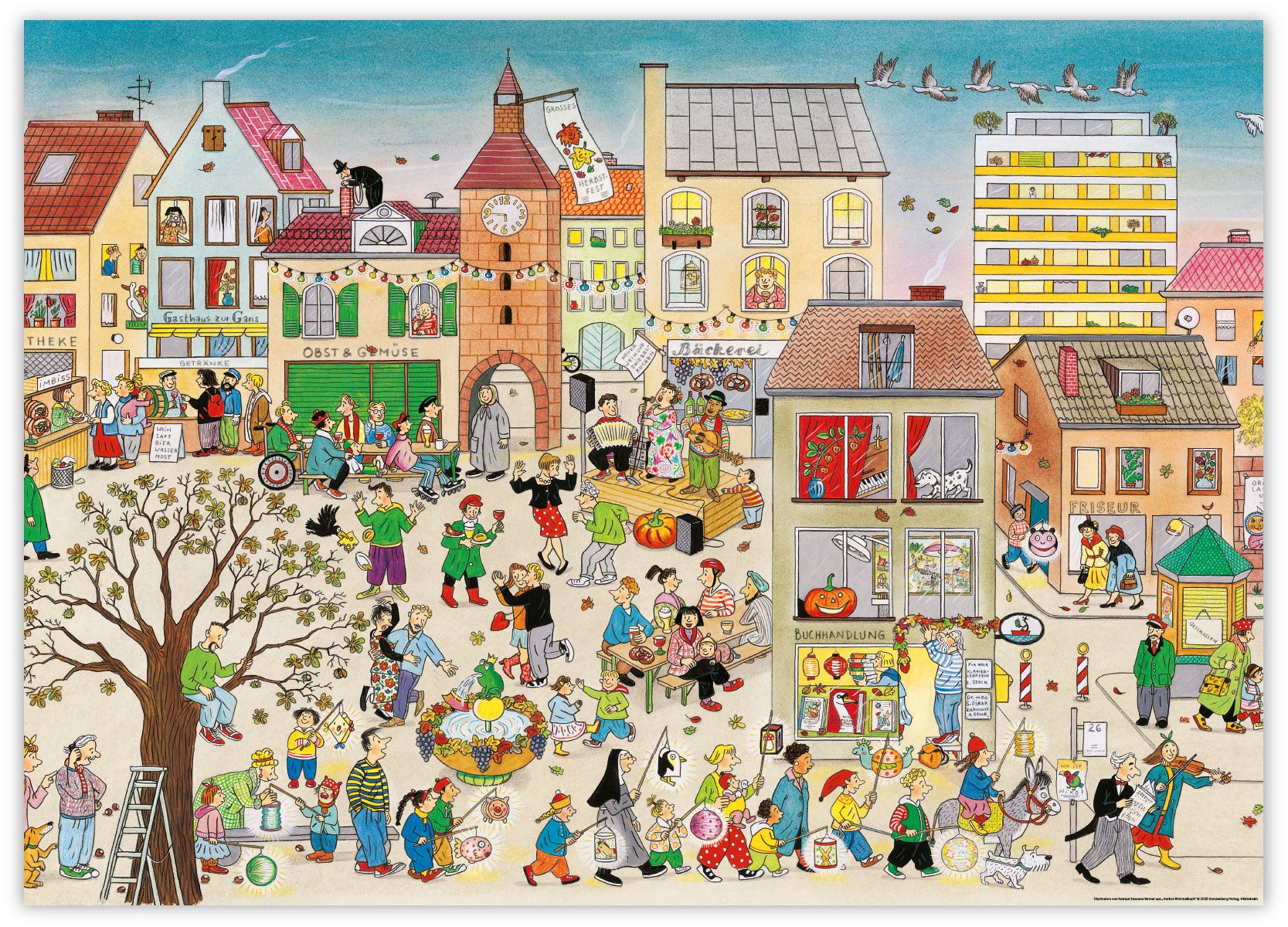 Poster fürs Kinderzimmer mit einer Illustration von Rotraut Susanne Berner aus »Herbst-Wimmelbuch« © 2005 Gerstenberg Verlag, Hildesheim